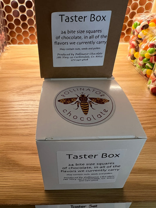 We are happy to join the ranks of world-class chocolates. Pollinator Chocolate focuses on supporting farmers and hand crafting single origin varietal cacao, stone ground from bean to bar. Although honey isn't in our chocolate, the essence of wellness is infused in every bar as we use organic and local ingredients when possible. This collection has been finely tuned for your pleasure.