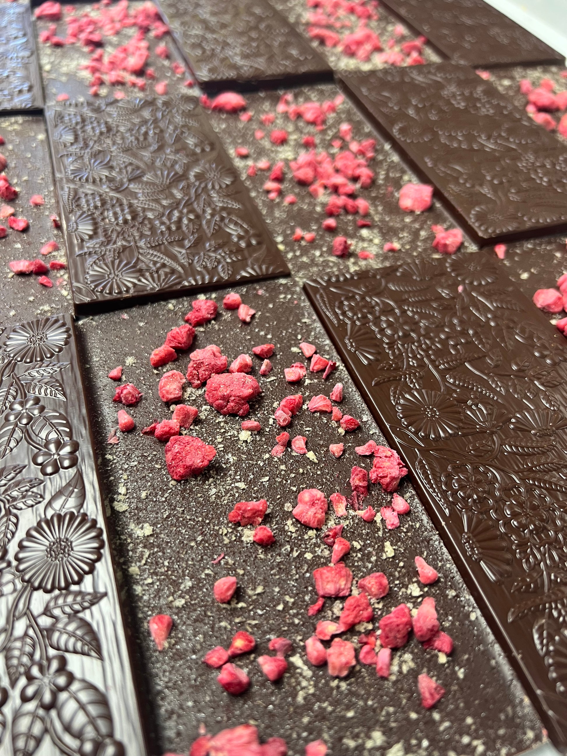 If you've heard the stories about how delicious the pulp of the cacao pod is, it's true. I was able to procure a single kilo of the freeze dried pulp and have added it to our pollinator blend bars. The interior of the cacao pod is reminiscent of "liquified skittles" A term I use the describe the unbelievable fruitiness of the pulp. We then add freeze dried raspberries to complete the bar. An idea brough by my work wife Crystal. Love you honey!